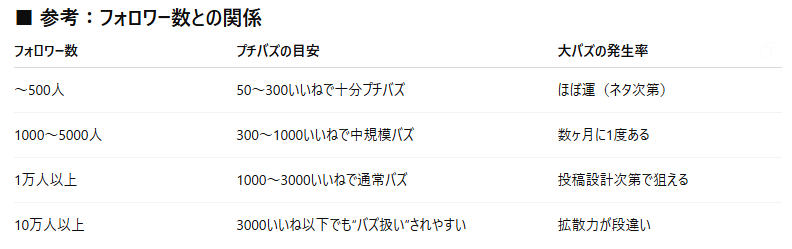 ChatGPTが教えてくれたバズの目安がこちら👇
